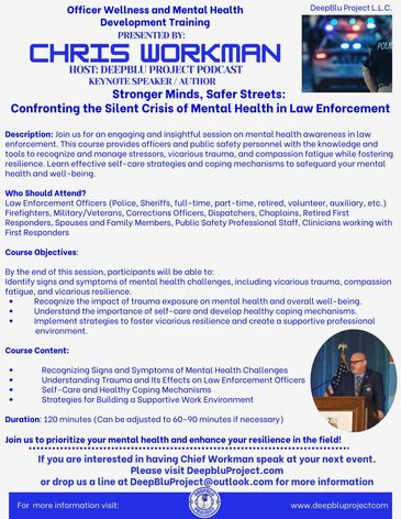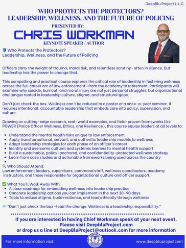 Participants will leave with simple, actionable steps to maintain mental clarity and a renewed understanding that wellness is not separate from the job. It is part of how we lead, serve, and stay effective over time.